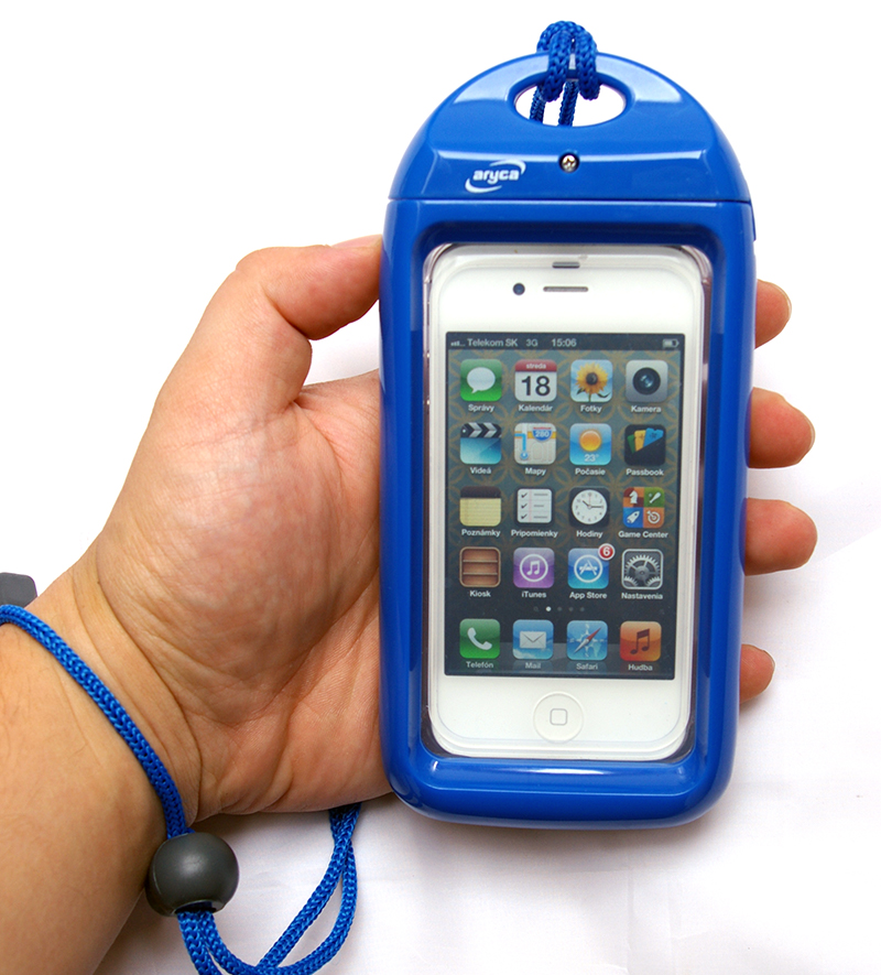 Púzdro Aryca je dostupné v rôznych farebných vyhotoveniach pre iPhone 3G/3GS, iPhone 4/4S a iPad. Chalani z aryca.sk nám konkrétne poslali modré púzdro pre iPhone 4, respektíve iPhone 4S, ktoré môžete vidieť na fotografiách. Príjemnou správou je, že samotné balenie produktu obsahuje okrem púzdra aj šnúrku na ruku v rovnakej farbe. Tá slúži na to, aby ste púzdro počas manipulácie pod vodou nestratili. Nosiť šnúrku na ruke sa oplatí hlavne ak sa v mori potápate alebo plávate na miestach, kde je hĺbka vody pod vami väčšia, ako 6 metrov. Do tejto hĺbky je totiž výrobcom garantovaná vodotesnosť a v prípade, že by sa vám púzdro vyšmyklo z ruky, môže tlak poškodiť vaše zariadenie. Balenie okrem toho obsahuje aj základné inštrukcie pre používanie a možné rizika, ktoré môžu vzniknúť nesprávnou manipuláciou.