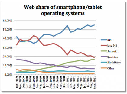 Systém iOS dominuje internetu s rekordným podielom 54,65%.