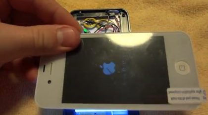 Falošný iPhone 4S zobrazuje na displeji len hlásenie o vybitej batérií.