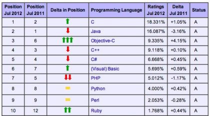 Objective-C je teraz tretí najpopulárnejší programovací jazyk sveta